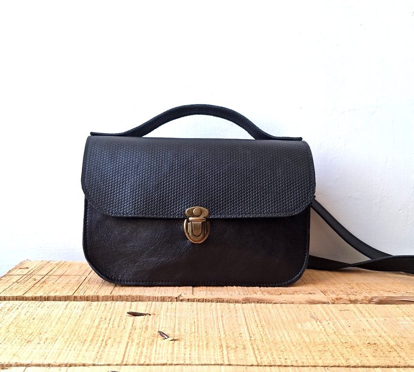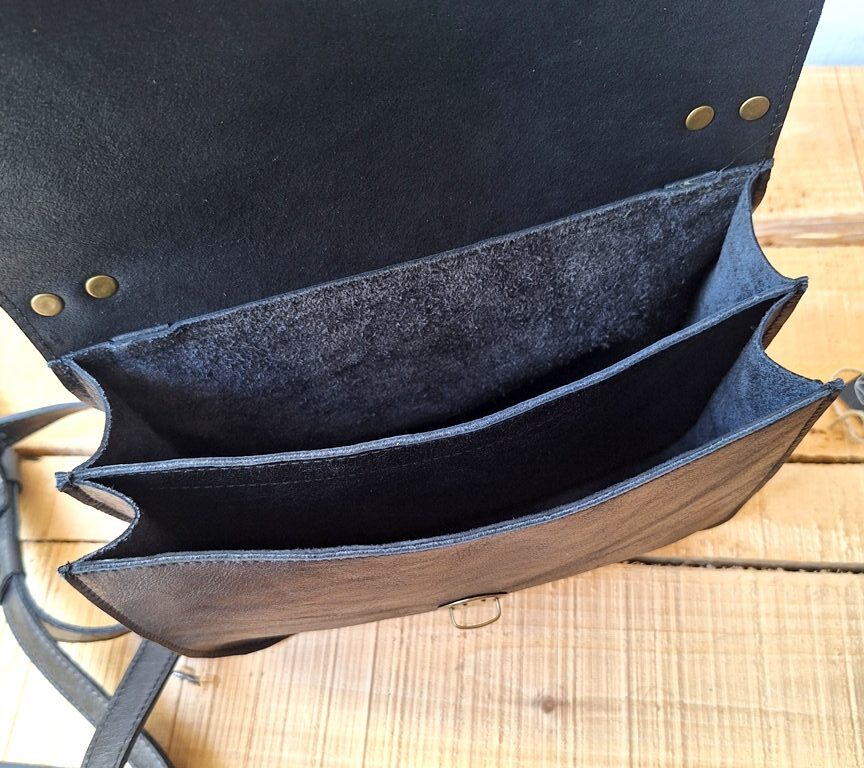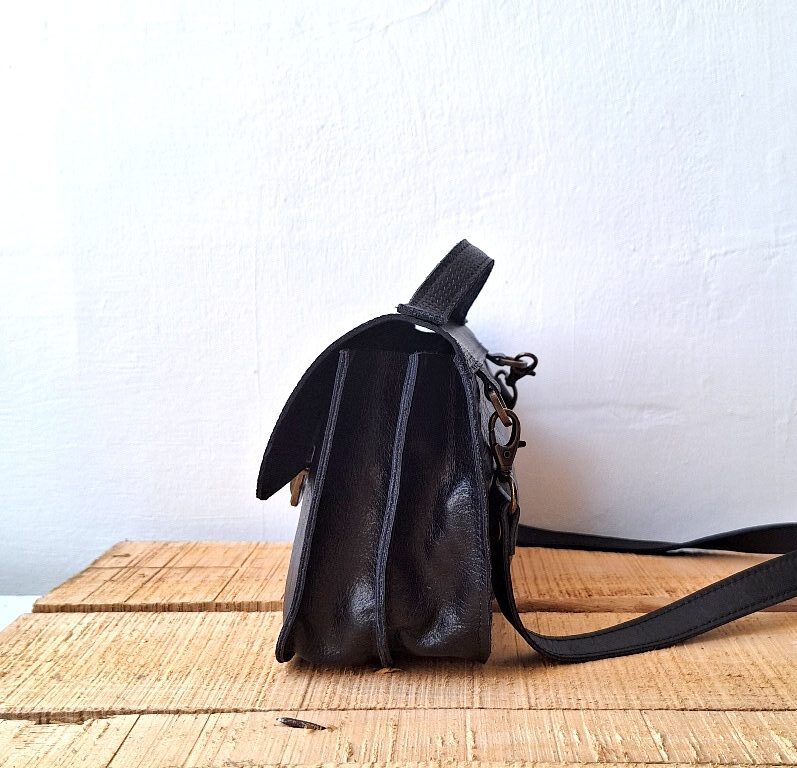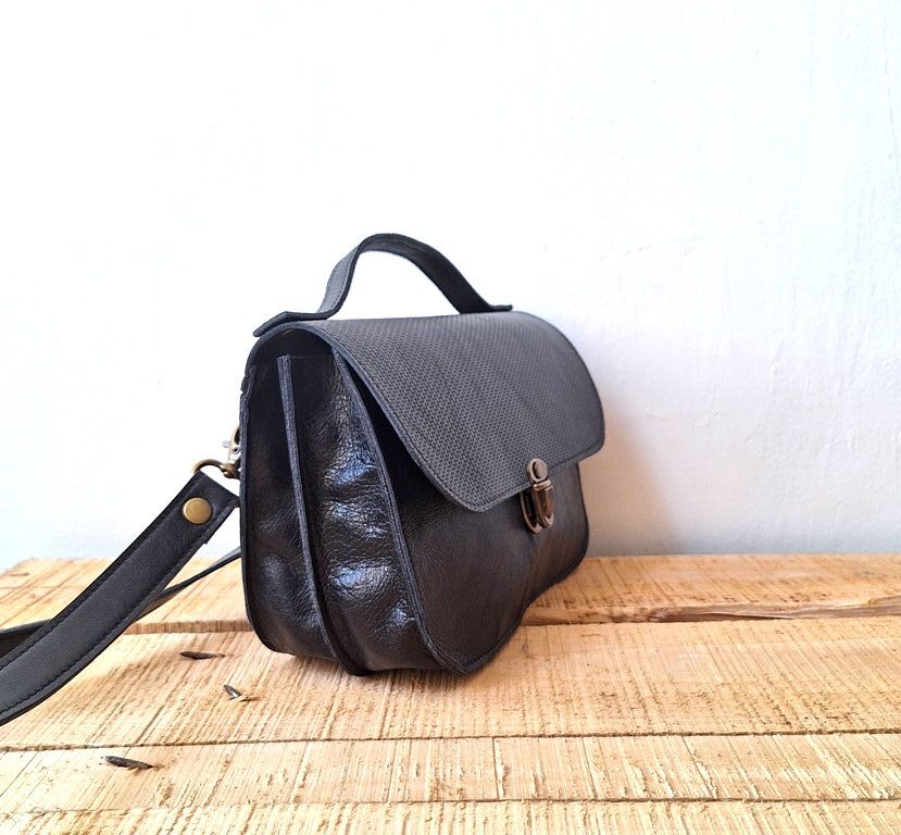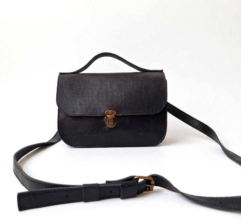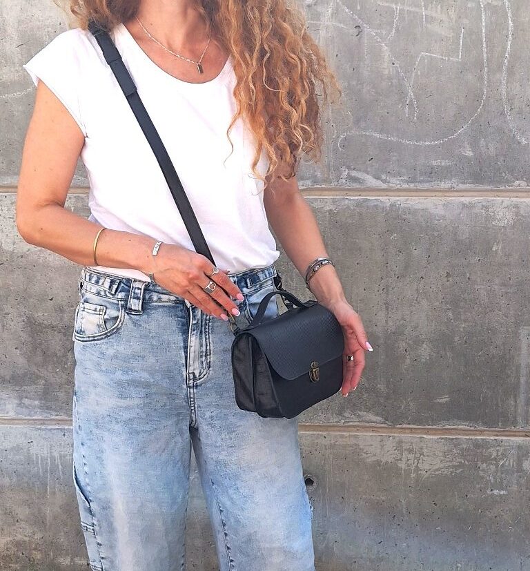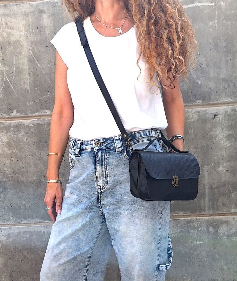 לתיק יש רצועת יד קטנה ורצועה ארוכה עם אבזם שניתן לקצר ולהאריך